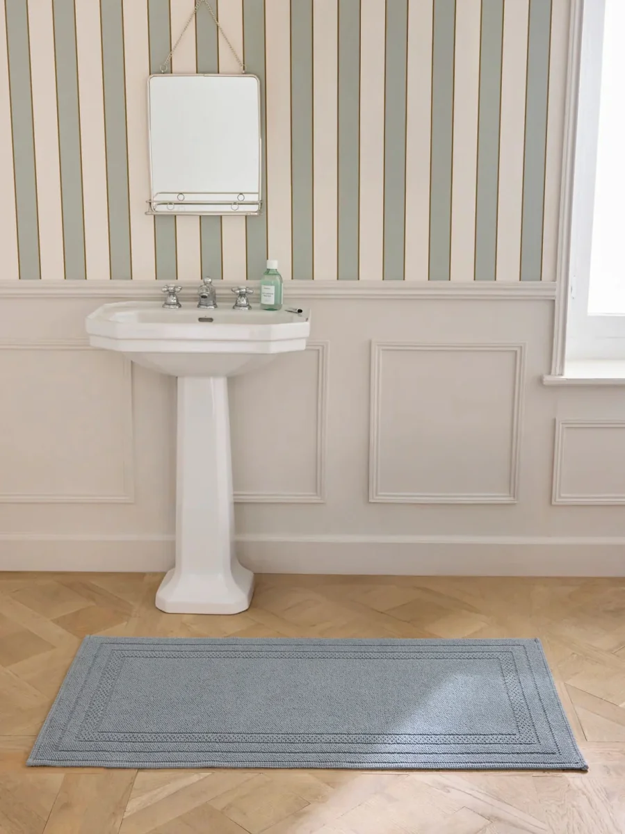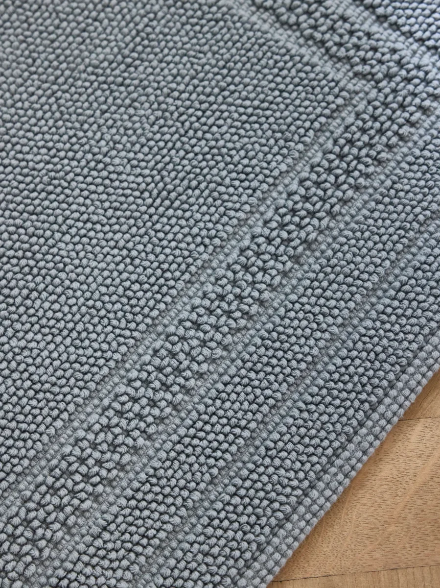 Tapis de bain en pur coton confectionné et tissé au Portugal. Ses bouclettes épaisses et moelleuses procurent un confort pour les pieds mais aussi pour les yeux.