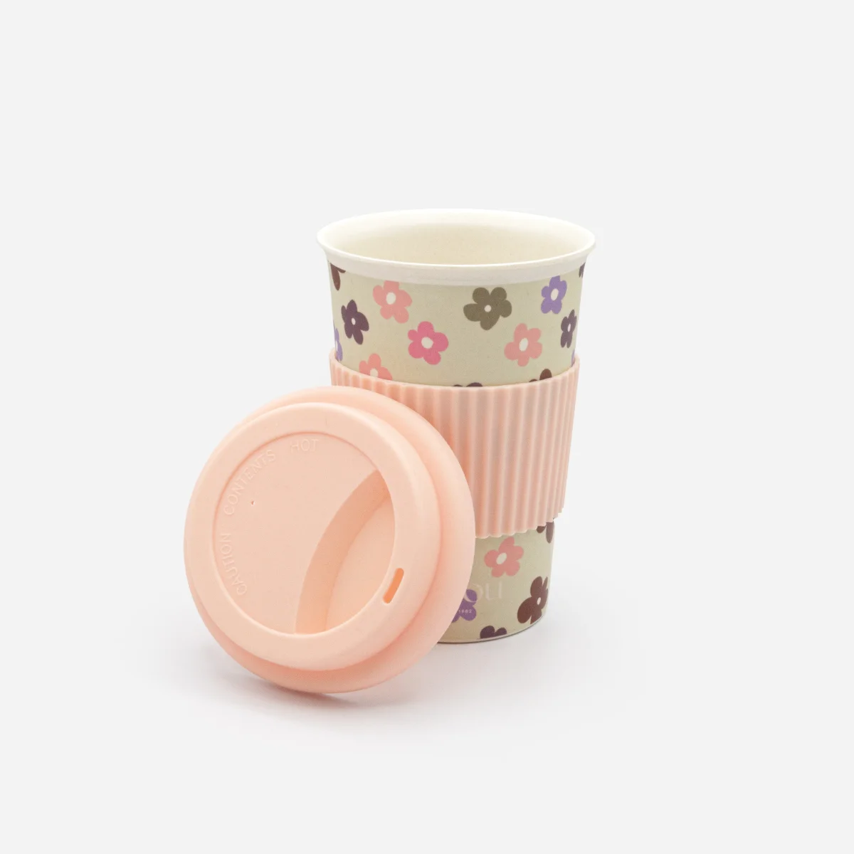 Tasse à café à motif floral avec manchon et couvercle en silicone