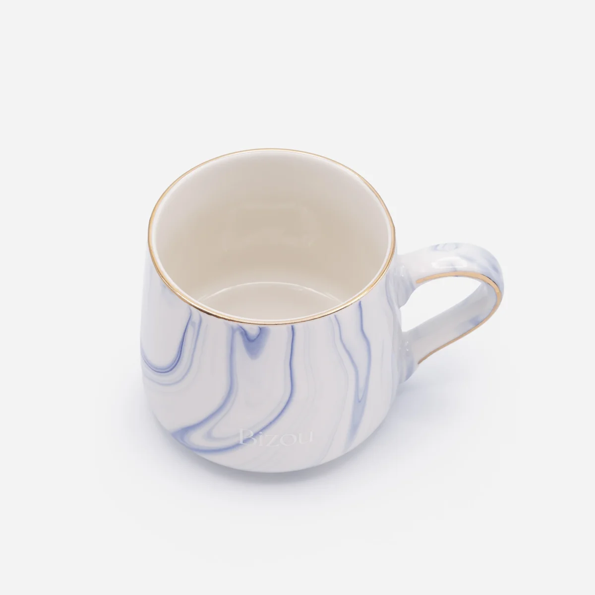 Tasse blanche avec marbrures bleues en céramique