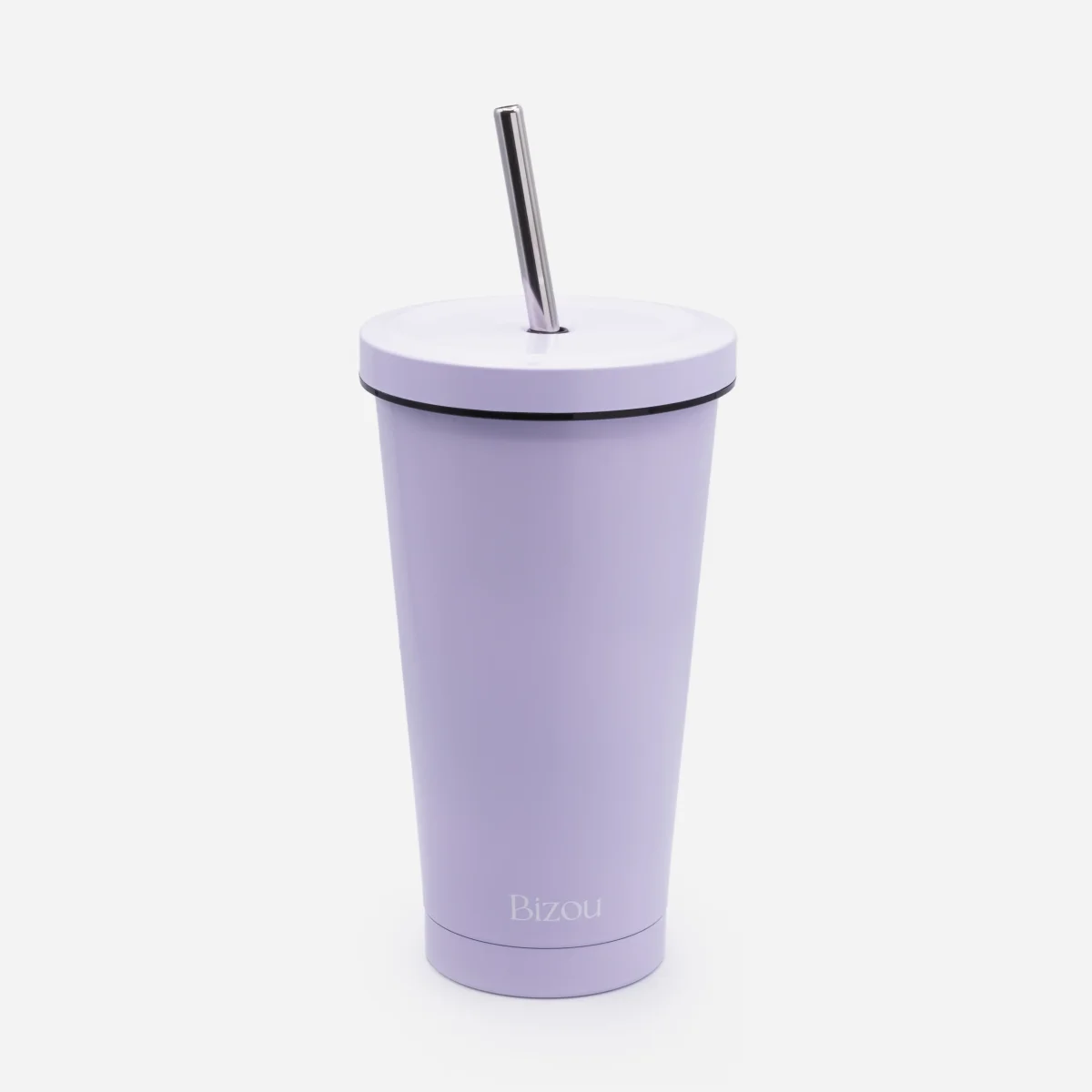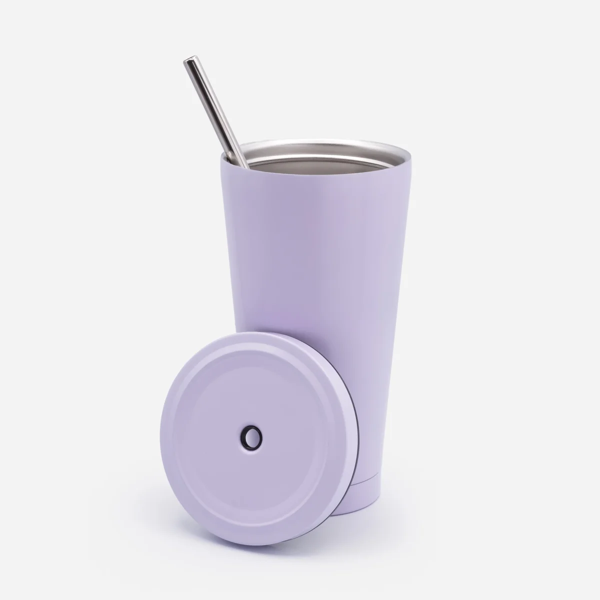 Tasse de voyage lilas avec paille en acier inoxydable