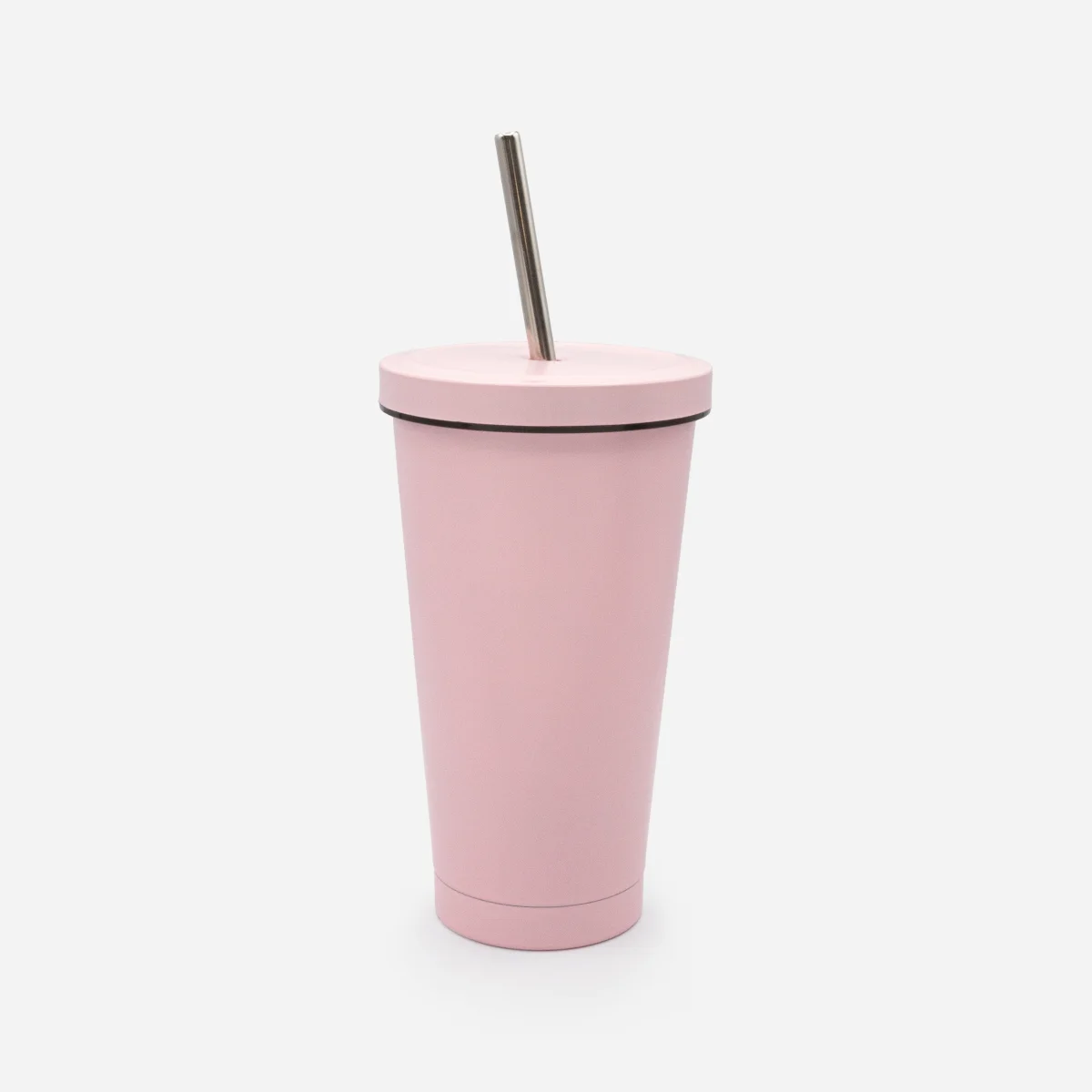 Tasse de voyage rose pâle avec paille en acier inoxydable