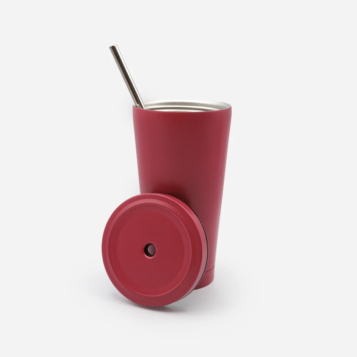 Tasse de voyage rouge cerise avec paille en acier inoxydable