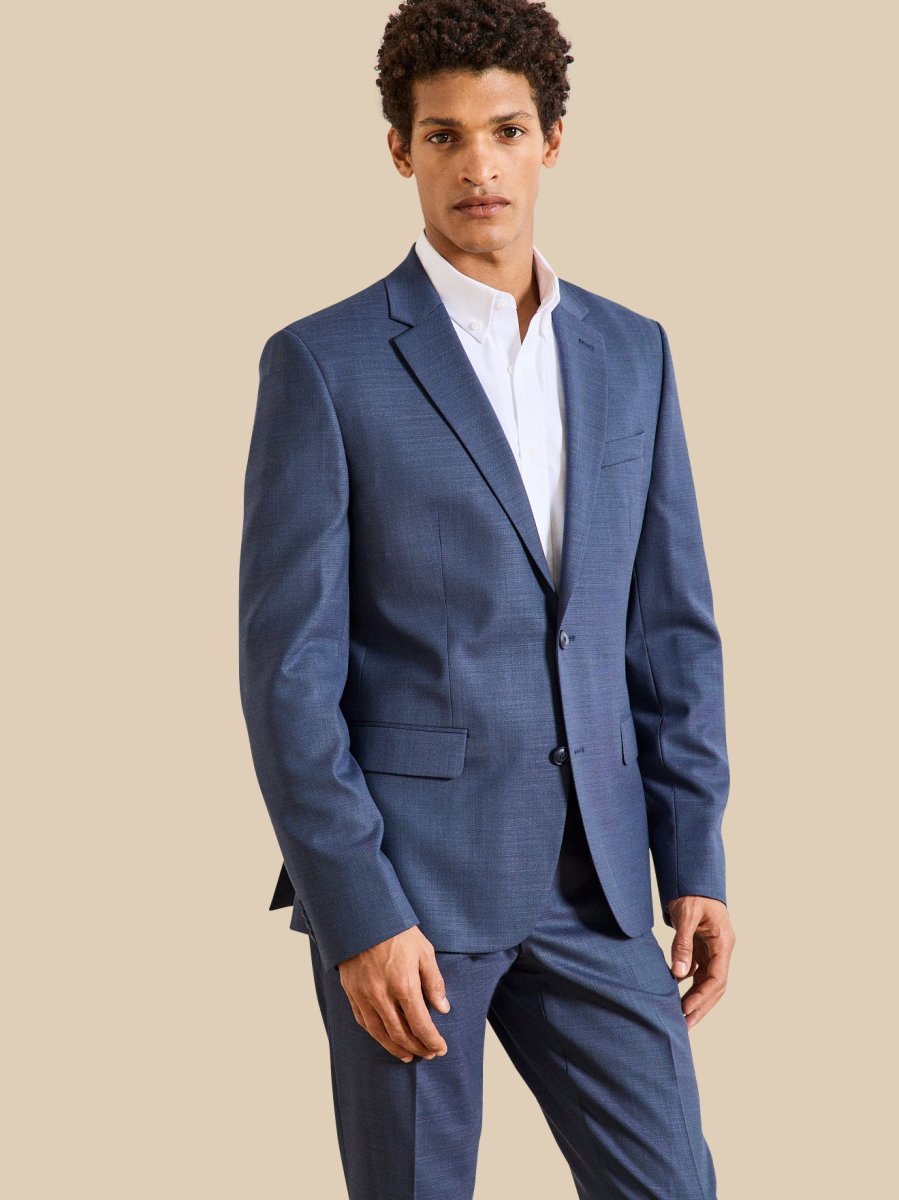 Sur un remarquable tissu texturé, notre veste de costume signe un look plus juste, plus actuel. Avec une ligne plus courte, des revers plus larges, un coloris mode et des finitions intérieures expertes, toujours impeccables. La marque d’un style raffiné, que ce soit en costume avec le pantalon coordonné ou en version solo sur un jean ou un chino.
