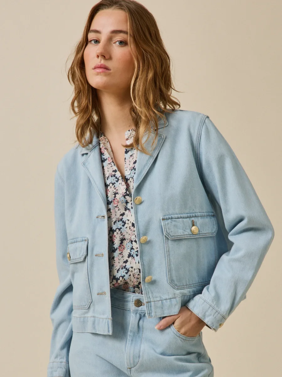 Elle est une pièce phare du dressing urbain quotidien. Basique mais jamais banale, la veste en jean se réinvente avec un col tailleur pour inspirer les tendances de la saison.