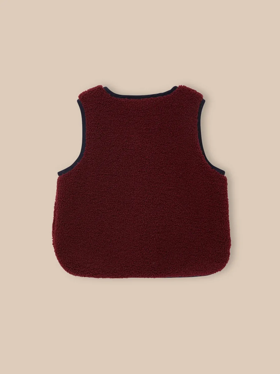 Style, douceur et finitions soignées. La veste moutonnée sans manches à fière allure de l’automne au printemps : en veste d’extérieur en entrée de saison, en cardigan au coeur de l’hiver.