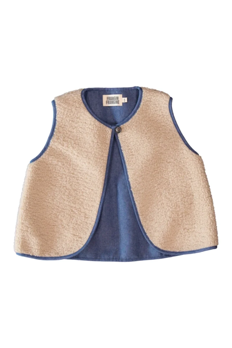 Louloute est un petit gilet sans manche, parfait sur les robes, blouses. C’est la pièce cool, pratique et essentielle pour des looks de folies. Version denim matelassé