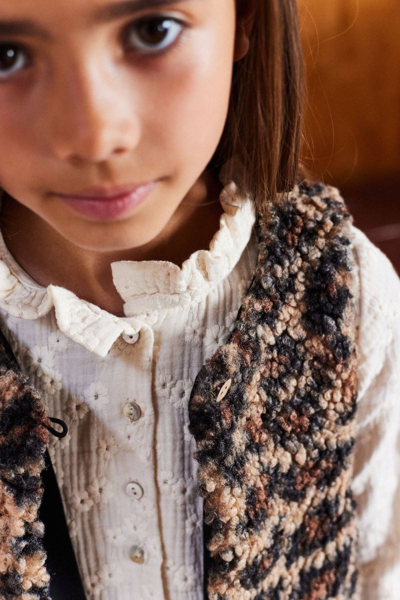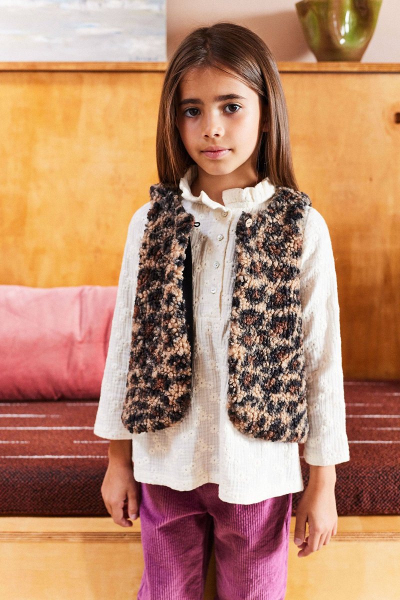 Louloute est un petit gilet sans manche, parfait sur les robes, blouses. C’est la pièce cool, pratique et essentielle pour des looks de folies. Version moumoute léopard