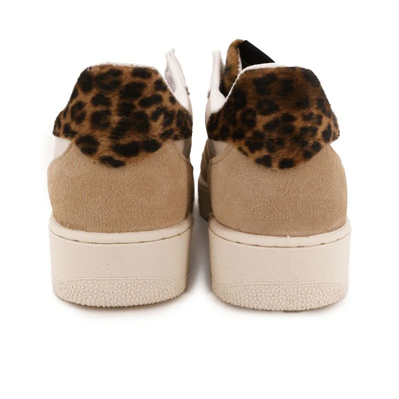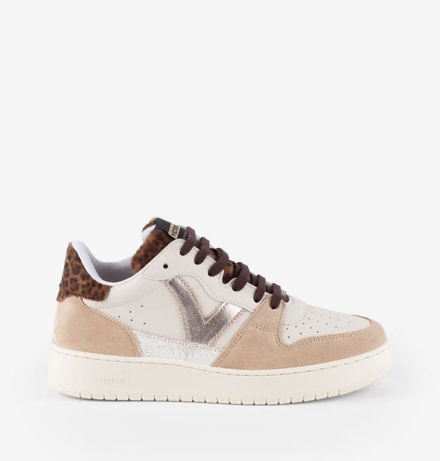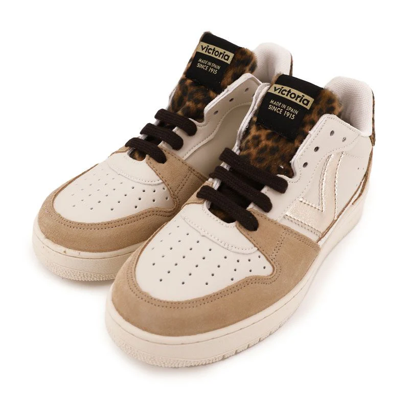 Victoria : baskets ado Taupe à semelle épaisse V/doré & léopard