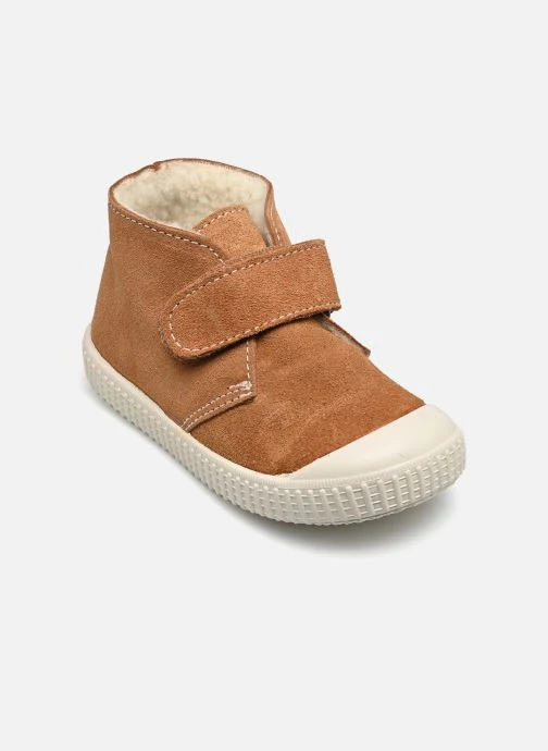 Victoria : chaussures montantes Camel fourrées à scratch en daim camel