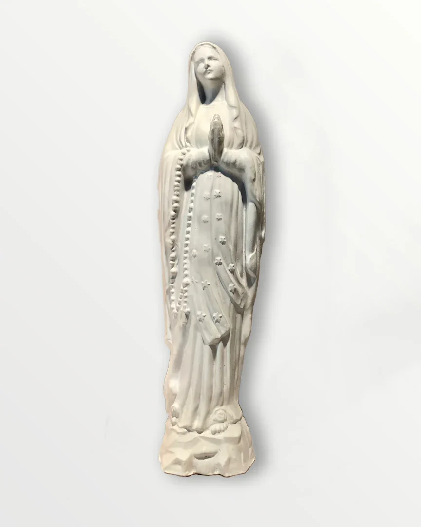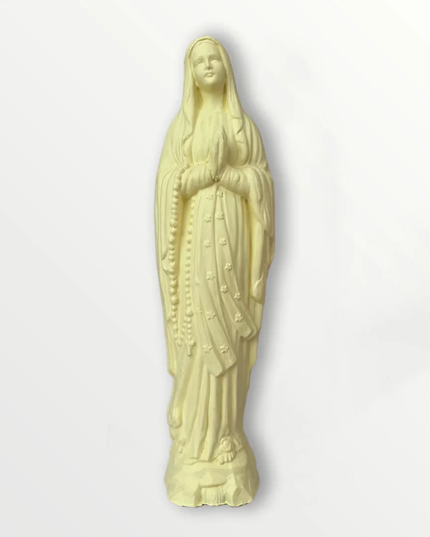 Nos statuettes en plastique recyclé viennent tout droit de Lourdes et sont remplies de plâtre ou de mortier, selon le modèle, dans un ESAT près de Lille. Chacune d’elles est ensuite soigneusement peinte à la main avec une finition satinée ou mate selon la couleur. Esthétiques et contemporaines, elles se posent facilement sur une étagère, une console ou une table d’appoint.