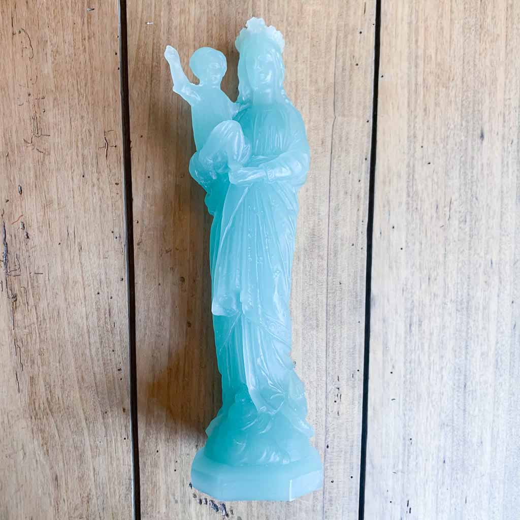 Cette vierge à l’enfant est un bel objet pour une décoration. N’hésitez pas à la mettre sur une table basse ou sur une commode devant un miroir par exemple.
